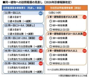 厚生労働省は2026年度の診療報酬改定に向け、訪問看護報酬の見直しを公表しました。今回の改定はいわゆるホスピス型住宅等における短時間・頻回な訪問の実態を是正し、内容に応じた評価へと移行させる狙いです。